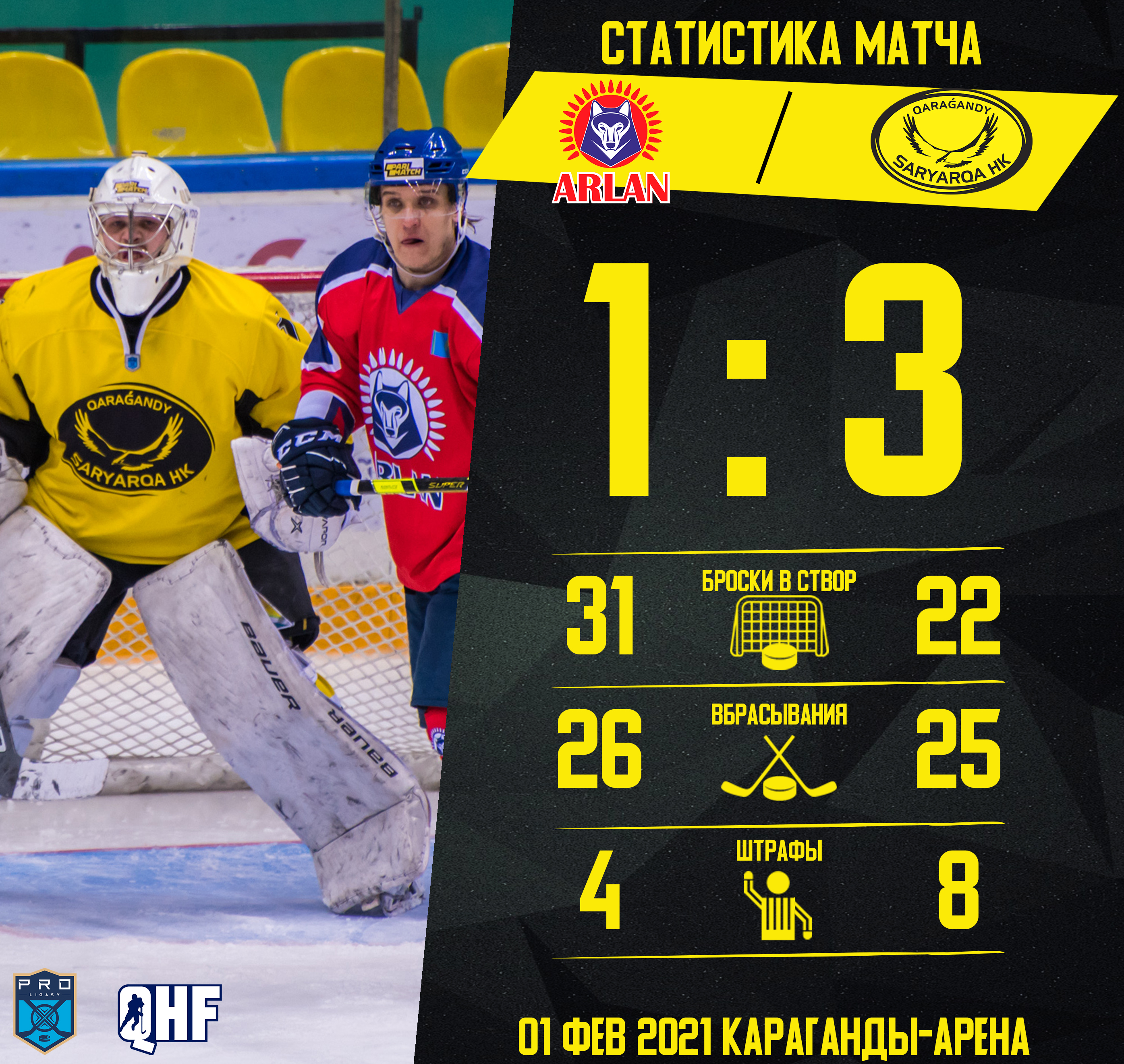 Завтра «Сарыарка» и «Торпедо» будут играть в финале. Не пропустите прямую трансляцию на qazsport.kz 2 февраля в 19:00.