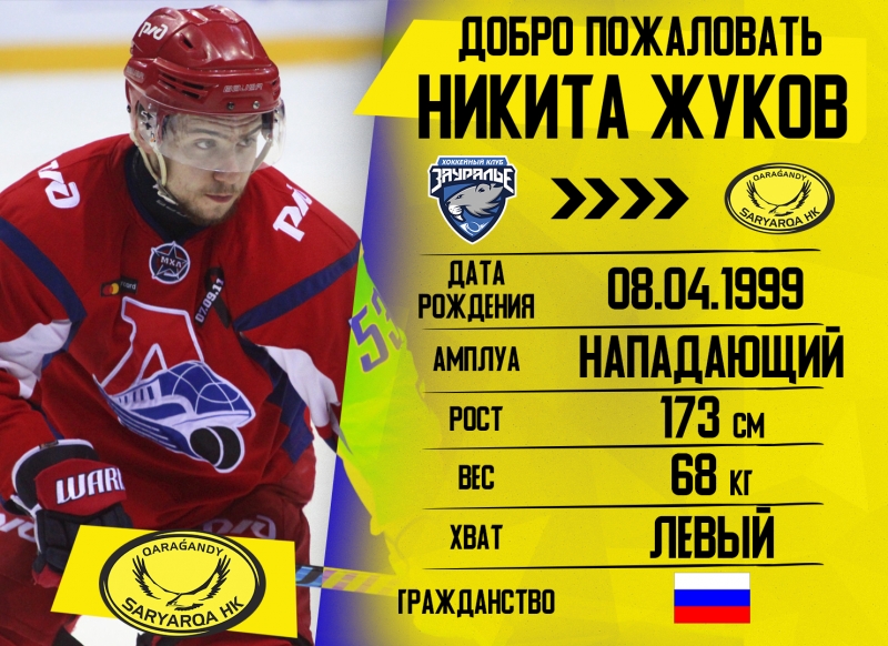 Жуков Никита Юрьевич, родился 8 апреля 1999 г, нападающий. Воспитанник ярославского "Локомотива". В МХЛ в составе "Локо" Никита провел 3 сезона, где стал двухкратным обладателем Кубка Харламова. В минувшем сезоне защищал цвета курганского "Зауралья". Добро пожаловать, Никита!