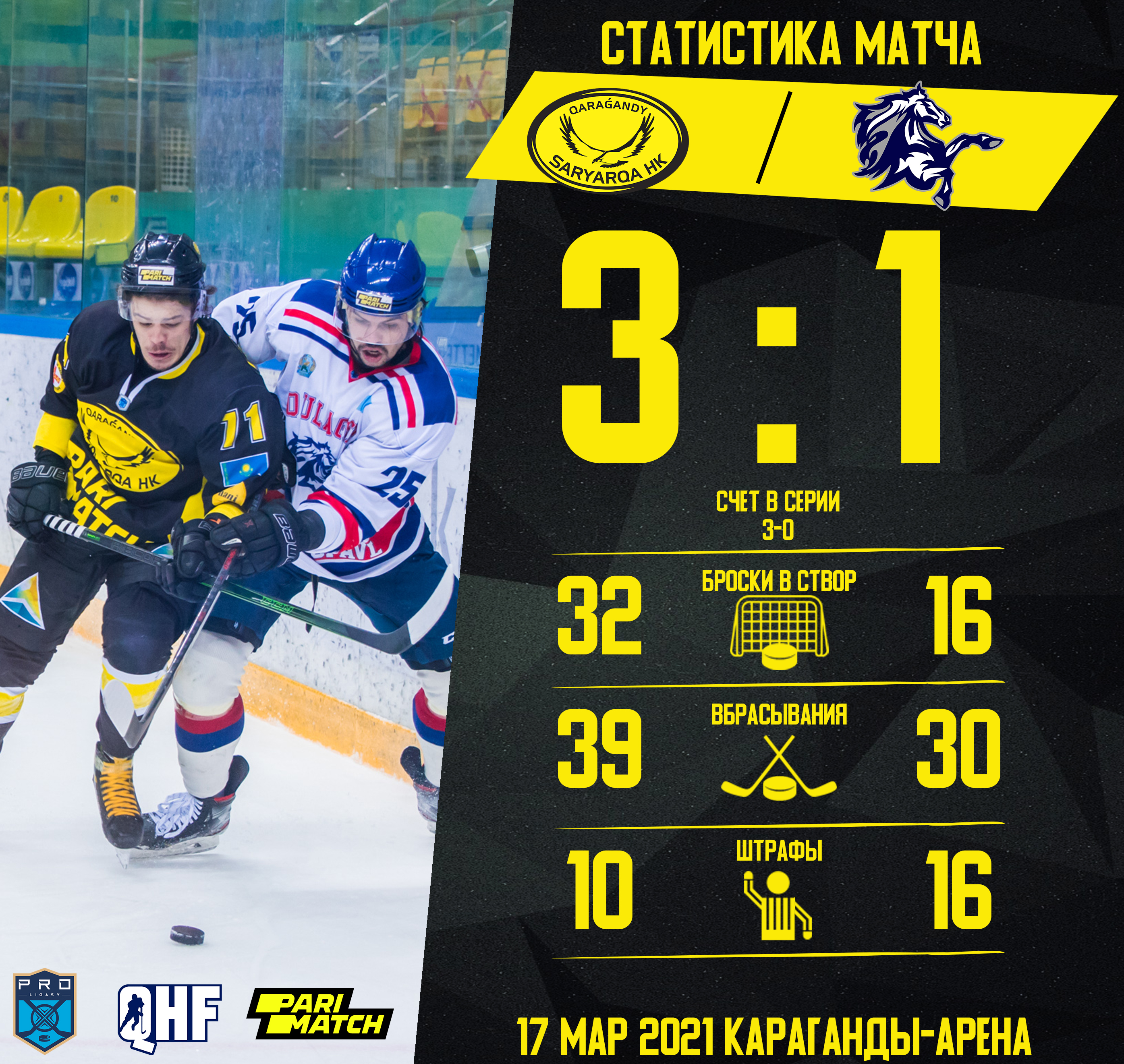 17 марта прошел третий матч 1/4 плей-офф "Сарыарка" - "Кулагер".