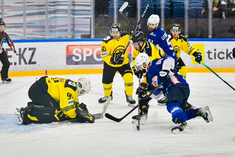 Отличный скоростной хоккей во втором периоде показали игроки обеих команд. Множество опасных моментов и силовой борьбы, отличная игра вратарей. Постепенно инициатива перешла к хоккеистам в желто-черной форме. Гол назревал, и наконец «орлы» отпраздновали успех. Снайпер «Сарыарки» Тимур Шингареев, прострелив с дальней дистанции, оформил дубль.