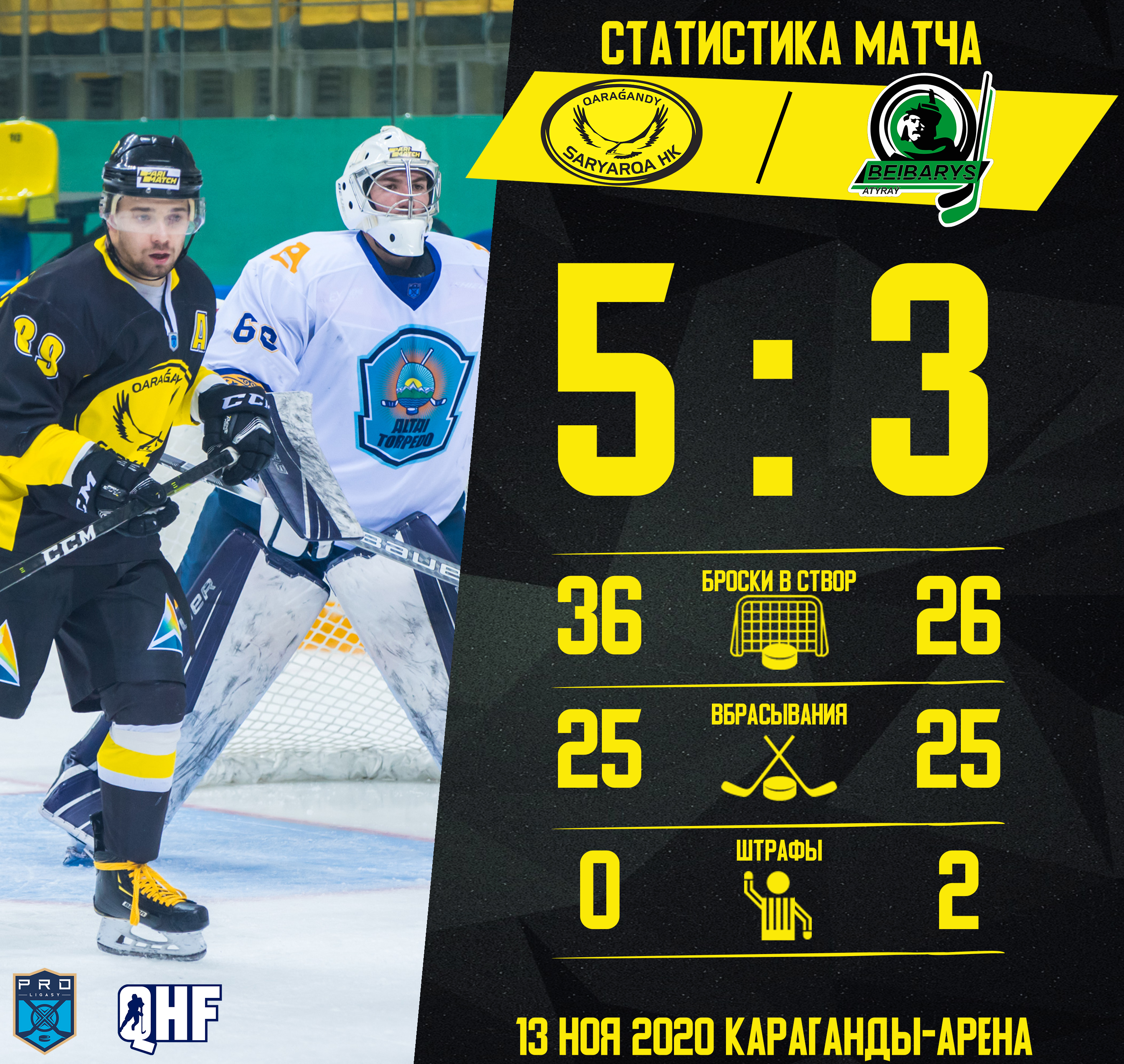 В центральном игровом отрезке "желто-черные" забросили ещё две шайбы на 28 и 34 минуте. Обе на счету Александра Борисевича. На второй перерыв команды ушли при счёте 3:0 в пользу карагандинской команды!