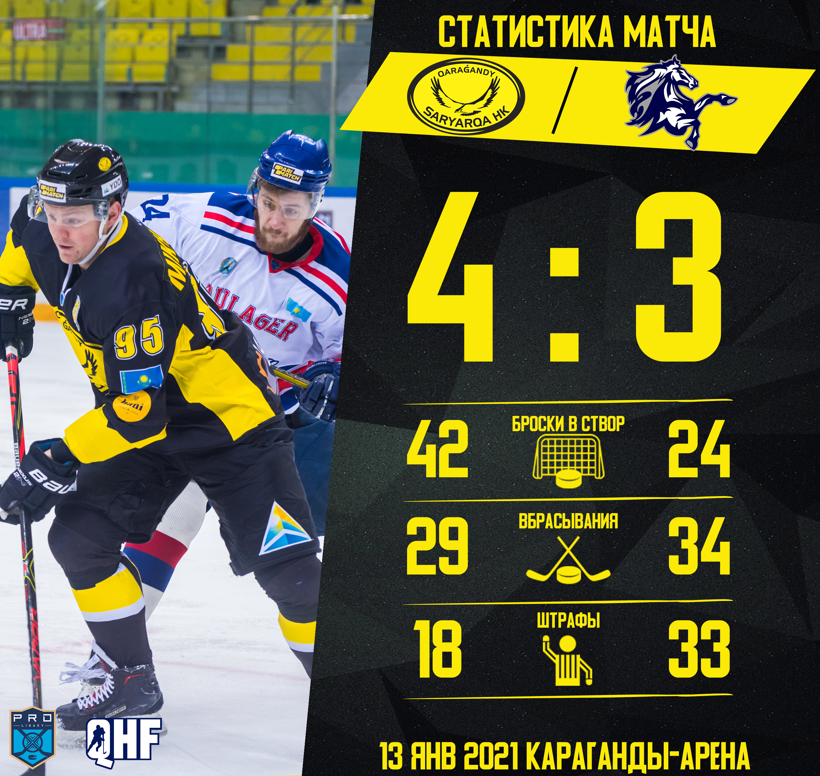 "Сарыарка" - "Кулагер" - 4:3 (0:1; 3:1; 1:2)