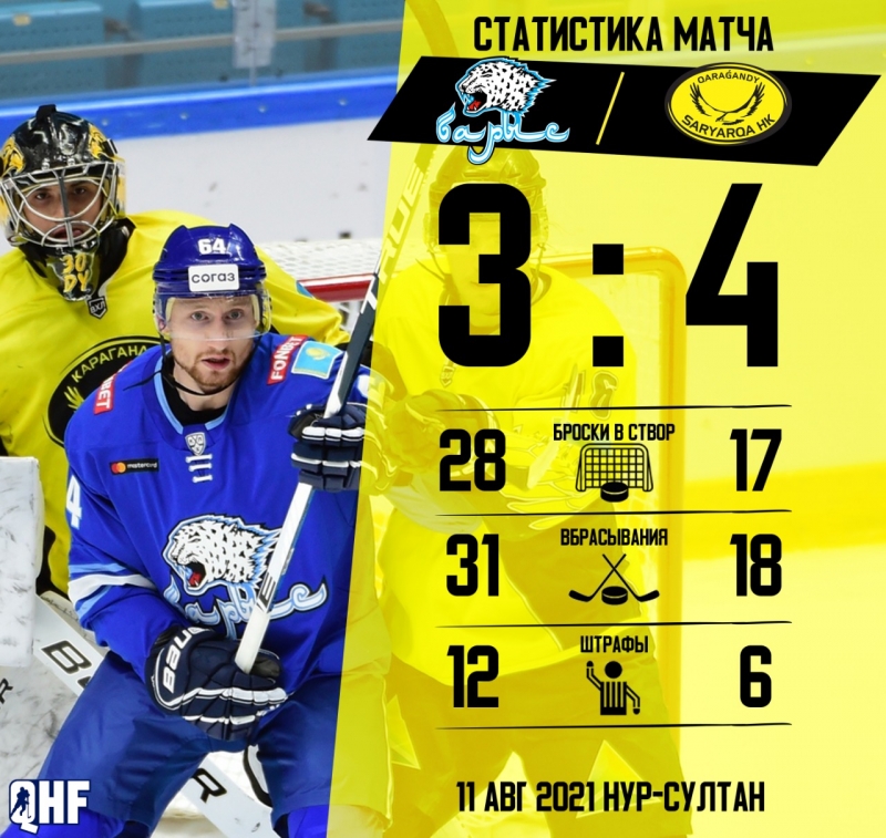 "Барыс" - "Сарыарка" 3:4 (0:2, 2:1, 1:1)