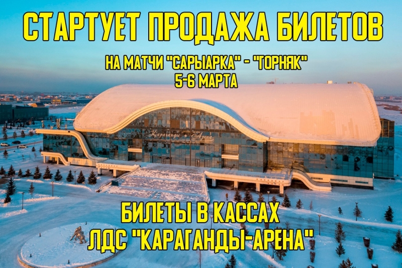 Реализация билетов начнется с 3 марта в кассах ЛДС Караганда-Арена (живая очередь, социальная дистанция)
