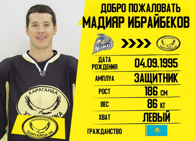 Мадияр Ибрайбеков подписал двухлетний контракт с ХК «Сарырарка».