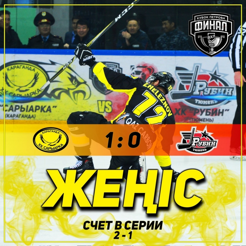 Во втором периоде обе команды по разу имели численное преимущество, но счет на табло не изменился. 1:0 – «желто-черные» вели после сорока минут игры. В заключительной трети матча тюменцы, понимая, что нужно спасать матч, стали действовать еще наглее в атаке, остро угрожая владениям Эдуарда Рейзвиха. Но наш голкипер был на высоте и смог сохранить свои ворота в неприкосновенности. На последних минутах «Рубин» плотно окопался в зоне «Сарыарки», но заработал совсем ненужные удаления, практически потеряв шансы на спасение матча. «Карагандинские орлы» выстояли под натиском и уверенно довели матч до «сухой» победы – 1:0.