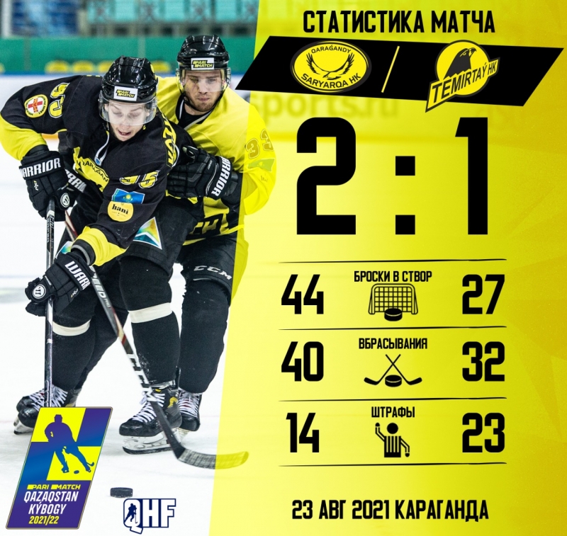 Дерби двух "орлов" команды начали с места в карьер. Да и никто не сомневался, что встреча начнется именно так, активно. "Орлы" по-другому не умеют. Несмотря на дефицит реализации моментов, игра получилась зрелищной на радость болельщиков. Уже на второй минуте "Сарыарка" получила численное преимущество в одного игрока. Реализовать большинство подопечным Леонида Тамбиева к сожалению, не удалось. А вот Темиртау своим шансом воспользовался сполна. За четыре минуты до конца периода после передачи Нероева и Королинского, Антон Кошелев вывел "темиртаусцев" вперед. На первый перерыв команды ушли при счете 0:1 в пользу "Темиртау".